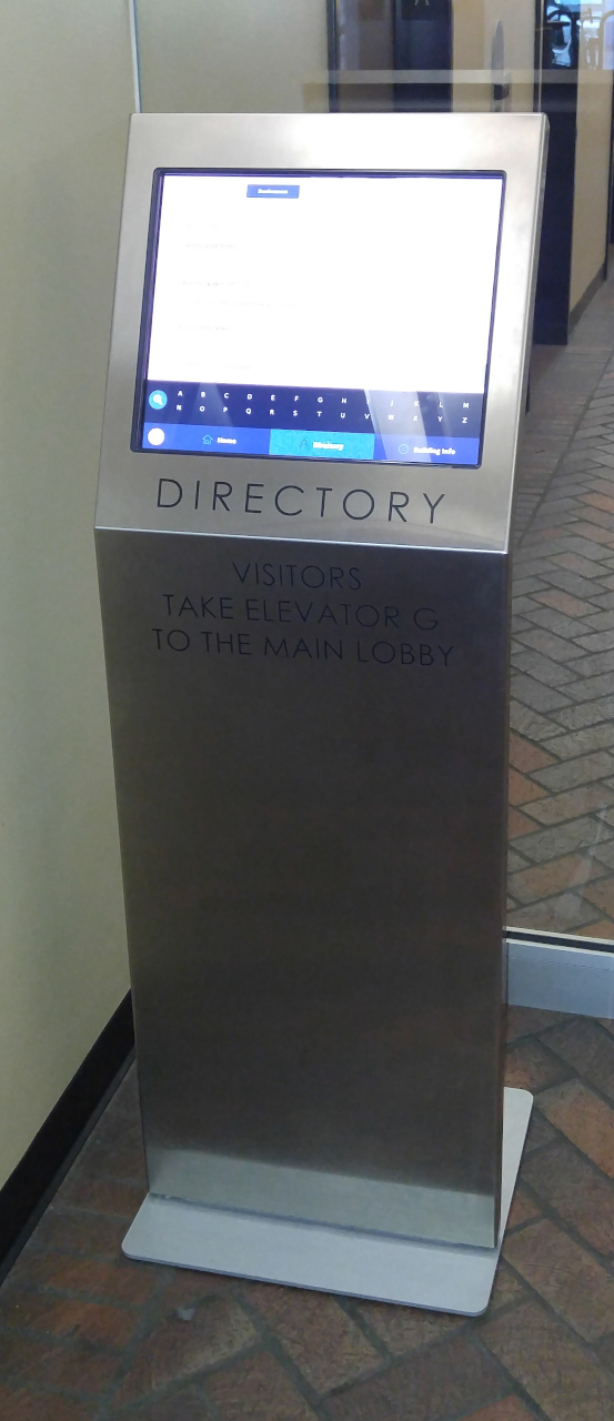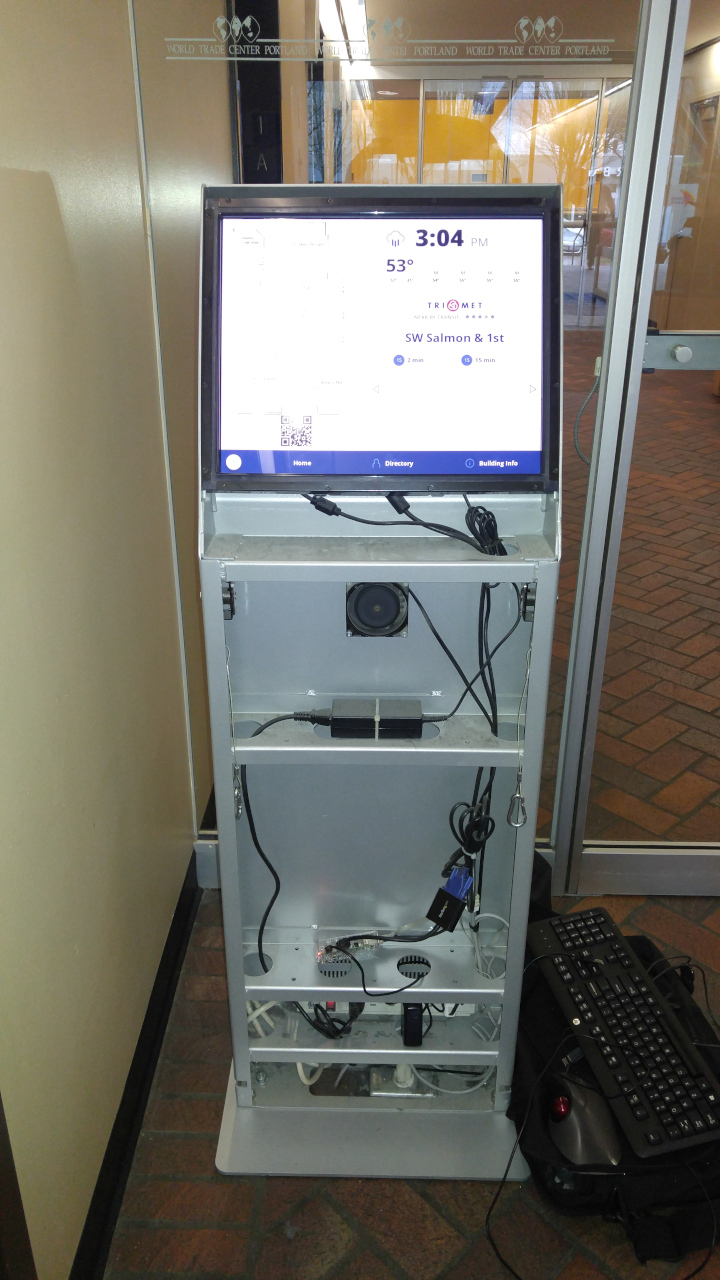 Retrofit of a legacy kiosk for the first floor and parking entrance. The previous solution could not integrate with the new Web technology-based solution. Our solution was to swap out the legacy Windows PC with a Raspberry IP configured to run Chrome in full-screen mode.